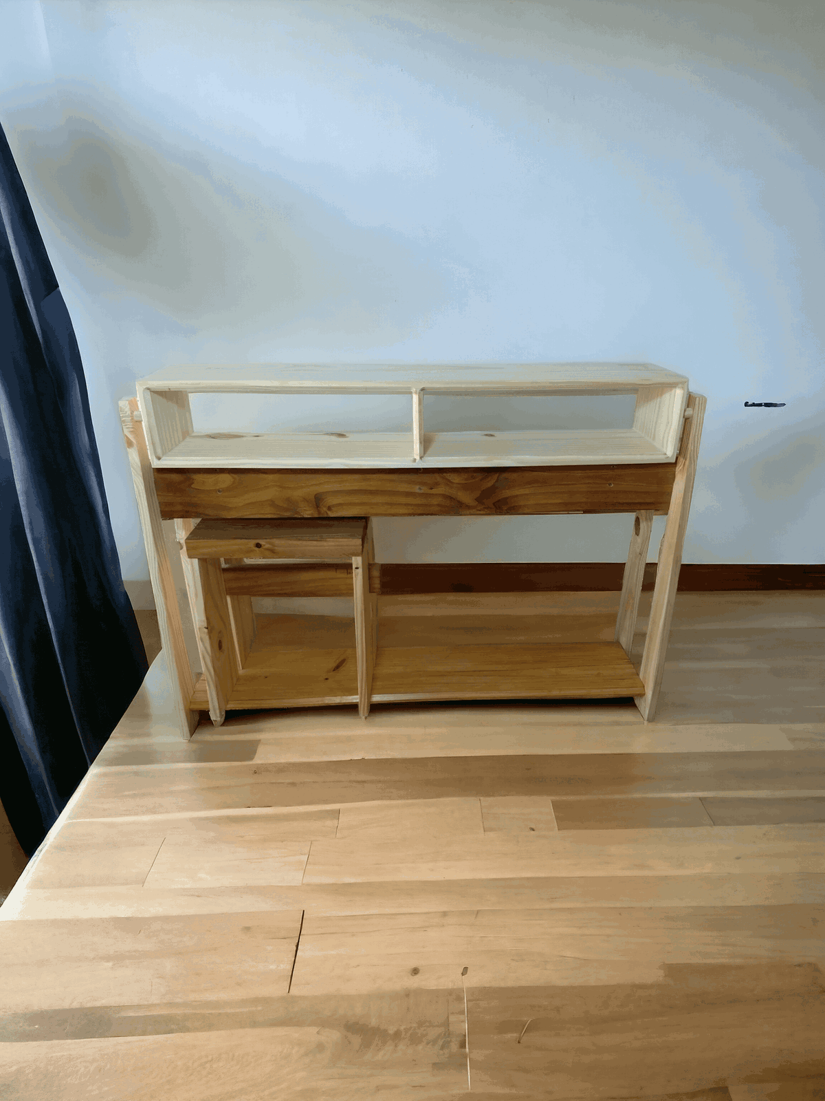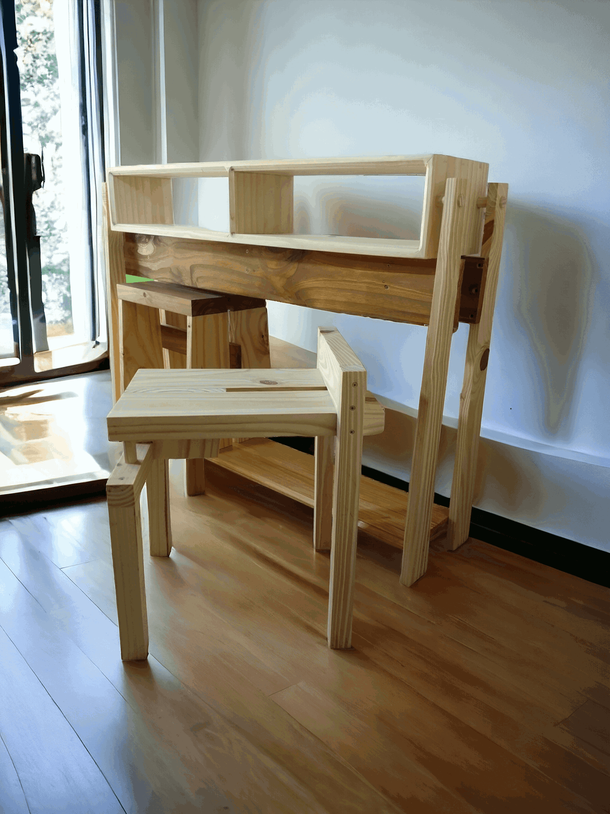 Trabajado en madera natural de pino, carpintería artesanal y tradicional con encastres y encolado. Por otras medidas o especies de madera no dudes en consultar. Acabado con cera de abejas y aceite de Carnauba.